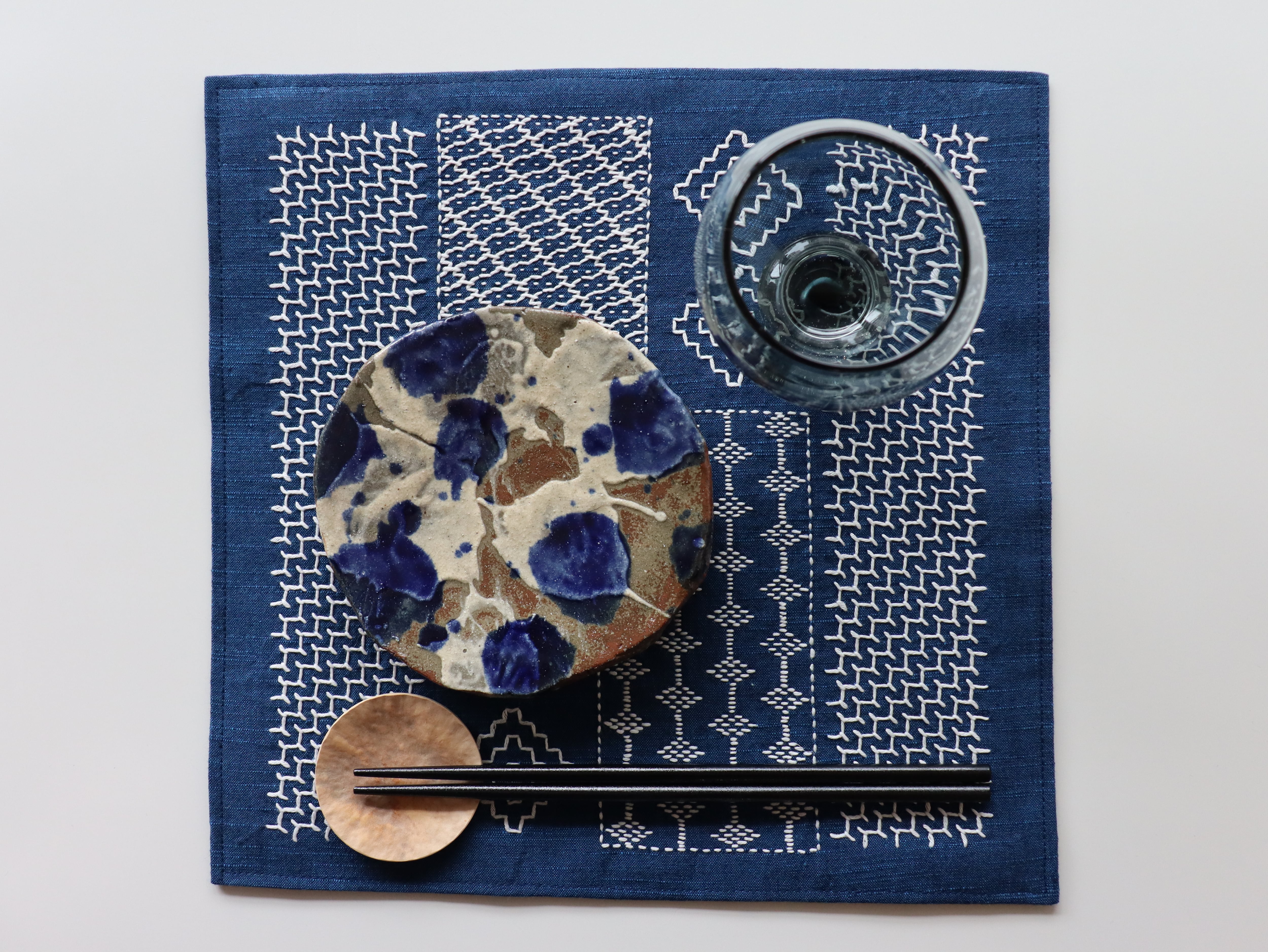 ふきんのキットやコースターのキットも世の中に本当にたくさん出回ってる中で、長井さしこを楽しめて尚且つ、日々の生活にちゃんと使えるモノって何だろう?と考えた結果、食卓に彩りを演出出来る料理を盛り付けたうつわの下に敷く『折敷』のキットに辿り着きました