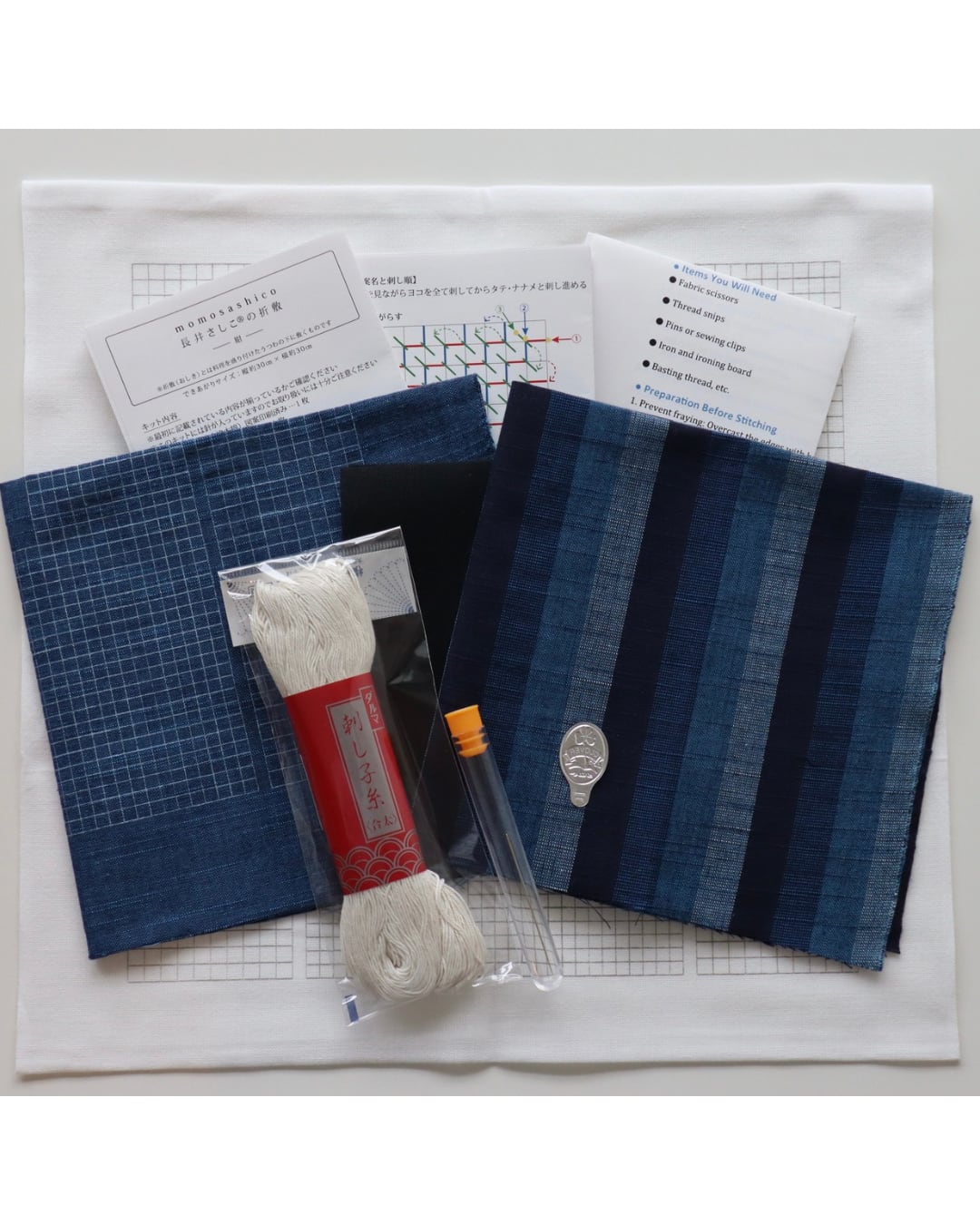 日本の伝統工芸『長井さしこ』をどなたでも気軽に刺せるよう、そして長井さしこのこだわりの一つでもある、角がしっかりと出て仕立てられるように工夫したわかりやすいレシピ付き