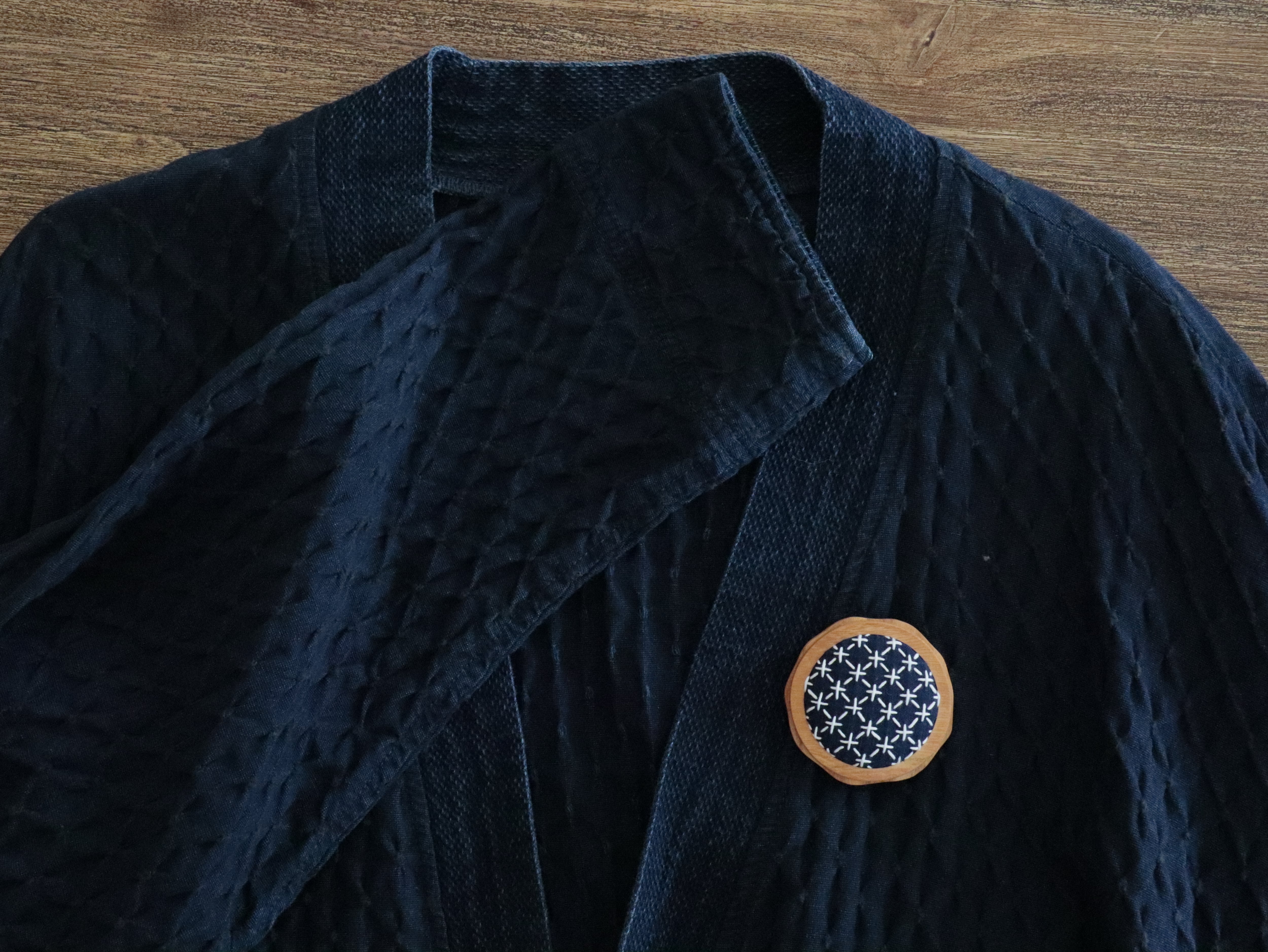 今回のワークショップでは山形県東根市の木の工房エヌ・ワークスに特別に作っていただいた、山形県産のサクランボの木を使ったブローチの土台、そしてWatanabe’s で染めていただいた