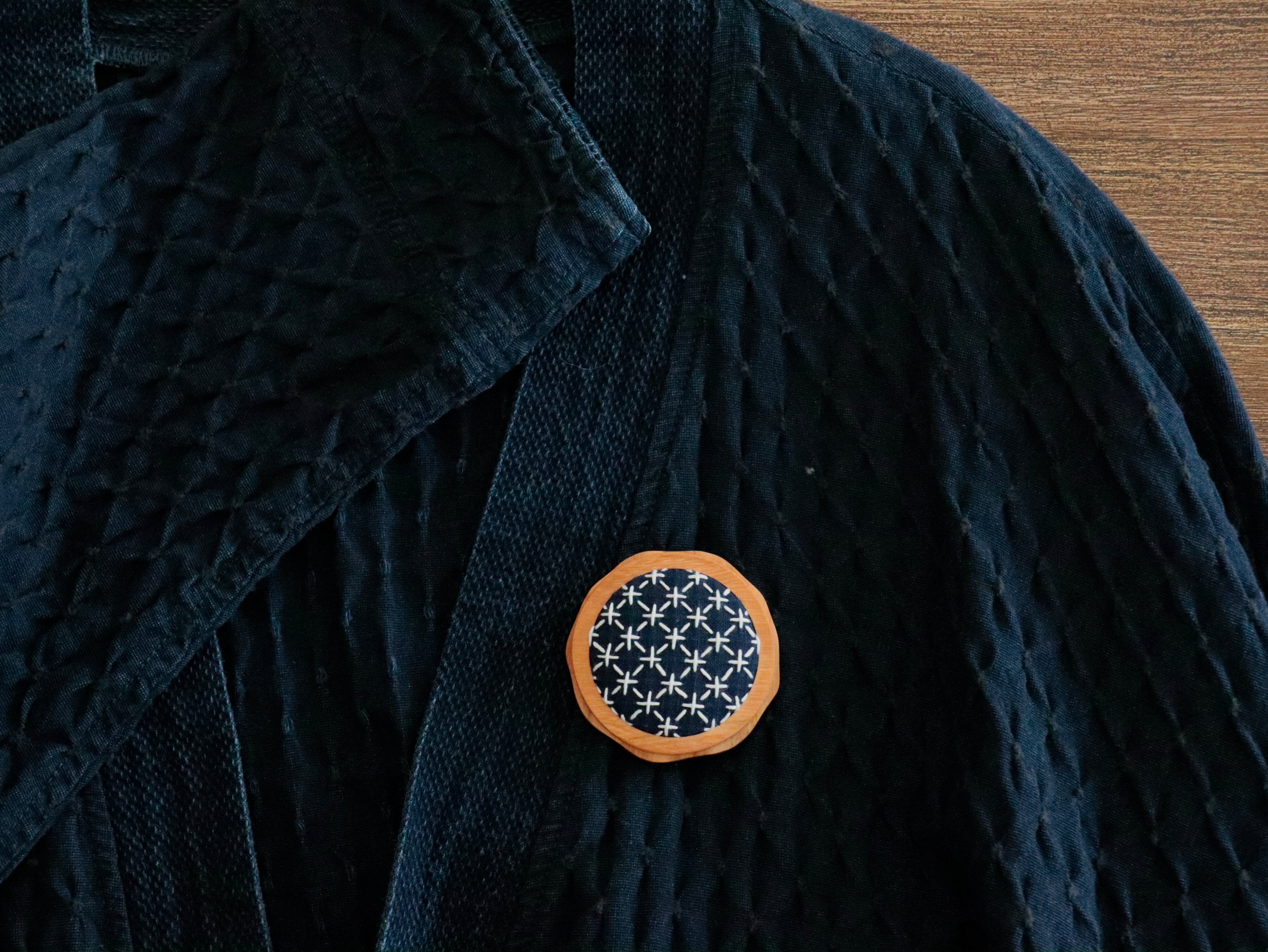 今回のワークショップでは山形県東根市の木の工房エヌ・ワークスに特別に作っていただいた、山形県産のサクランボの木を使ったブローチの土台、そしてWatanabe’s で染めていただいた